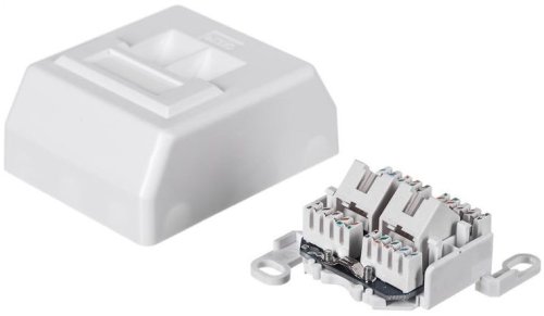 PremiumCord Zásuvka 2x RJ45 na omietku - CAT 5e - šikmý vývod - narážacie svorky - na omietku (netreba krabičky) - farba biela .