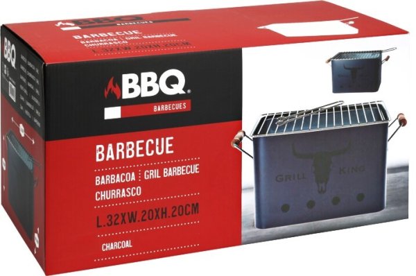 prenosný gril na drevené uhlie v modrej farbe - perfektný ako cestovný gril, do kempu aj na záhradu a na chatu - chrómovaný grilovací rošt s rukoväťou - postranné drevené rukoväte pre pohodlné prenášanie - rozmery grilu: 32 x 20 x 20 cm - šírka aj s rukoväťami: 43 cm - model a farba: GRILL KING matná modrá - značka: PROGarden