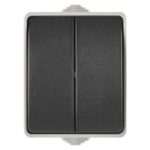 produkt: spínač sériový č. 5 (lustrový) typ: 250 V~/10 AX farba: šedo-čierna spôsob montáže: na stenu krytia: IP54 prevedenie: 2 tlač. klasický vodeodolný predajný obal: 1 ks, PE sáčok