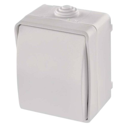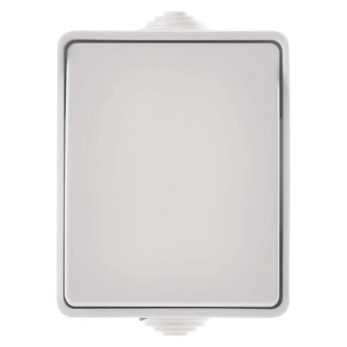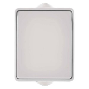 Prepínač nástenný IP54, jednotlačítkový, biely