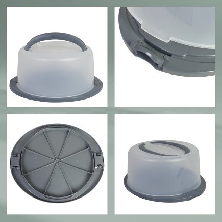 Tortová dózaDve praktické rukoväte uľahčujú prepravu a 2 bočné chlopne na spodnej doske zaisťujú, že plastový kryt je pripevnený k spodnej doske.- farba: tmavo šedá- materiál: PP plast- priemer spodnej tácky: 38 cm- priemer veka: 33 cm- výška: 17 cm