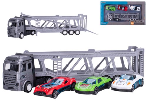 Prepravník áut 22 cm kov voľný chod s autami 3 ks 7 cm kov voľný chod