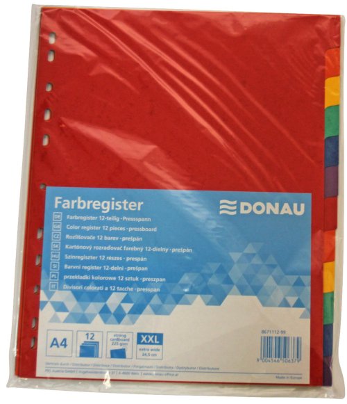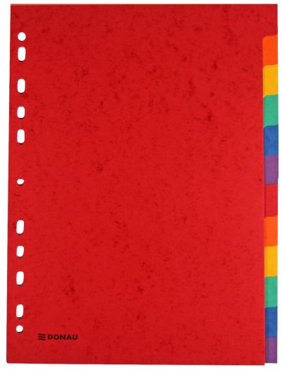Prešpánové rozlišovače formátu A4 Europerforácia Popisovateľné Počet kusov v sade: 12 Farba: červená Farba záložiek: šesť farieb po 2 kusoch (červená, oranžová, žltá, zelená, modrá, fialová)