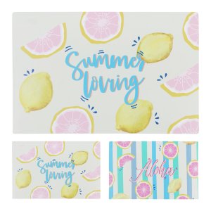 rozmery: 43,5 x 28,5 cm hrúbka: 0,4 mm materiál: polypropylén mix motívov: aloha, summer living