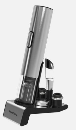 V balení: Otvárač na víno, nabíjací kábel, stručný návod na použitie, záručný list, nabíjacia základňa, rezačka fólie, prevzdušňovač, vákuová zátka