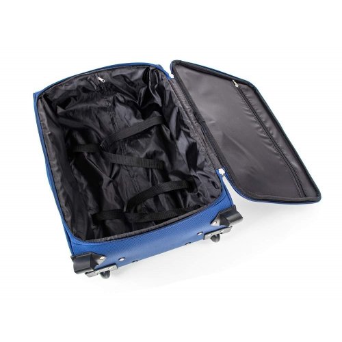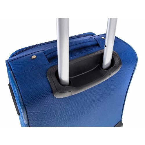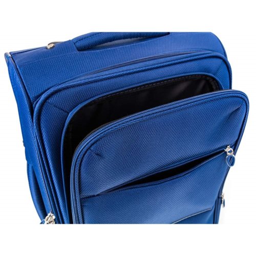 Cestovný textilný kufor 20'' v modrej farbe, je vyrobený z textílie, čo zaručuje nízku hmotnosť batožiny. Je opatrený 2 kolieskami pre ľahké premiestnenie batožiny. Kufor má 2 textilné madlá (bočné a horné) a 1 plastové s teleskopickou rukoväťou s poistkou proti zasunutiu a možnosťou nastaviteľnej výšky vo viacerých polohách. Vo vnútornom priestore nájdete istiace popruhy a vnútorné vrecko pre lepšiu fixáciu a usporiadanie vašich vecí. Ďalej má vonkajšie vrecko na umiestnenie drobnejších vecí. Kufor sa uzatvára na zips. Nosnosť cestovnej batožiny je 10 kg.