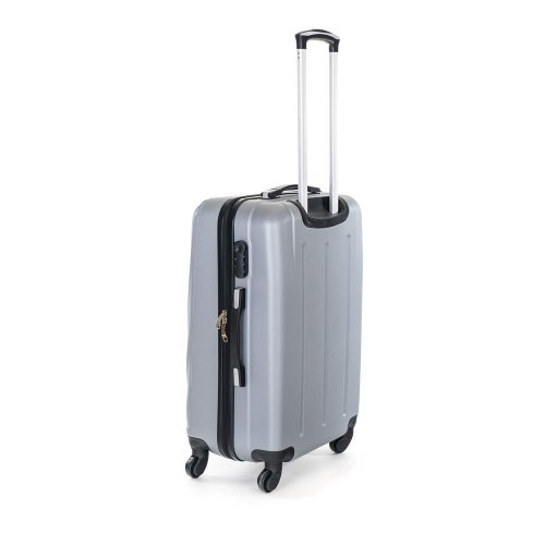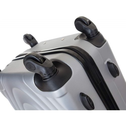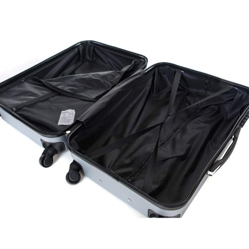 Cestovný škrupinový kufor na kolieskach ABS07 veľkosti M v šedej farbe, je vyrobený z kvalitného plastu ABS, ktorý je odolný proti nárazu. Je opatrený 4 kolieskami otočnými o 360 st., vďaka tomu je manipulácia s kufrom veľmi jednoduchá. Kufor má 3 plastové madlá: bočné a dve horné, z ktorých je jedno s teleskopickou rukoväťou s poistkou proti zasunutiu a možnosťou nastaviteľnej výšky vo viacerých polohách. Kufor sa uzatvára na zips a oboch jazdcov môžete spojiť do kódového zámku. Vnútorná časť kufra má látkovú deliacu prepážku s vreckom a krížové upínanie pre lepšiu fixáciu a usporiadanie vašich vecí. Nosnosť cestovnej batožiny je 18 kg. Rozmery: 59 x 41 x 26 cm a výška kufra vr. koliesok 65 cm. Objem: 58 l. Váha: 3 kg.