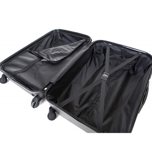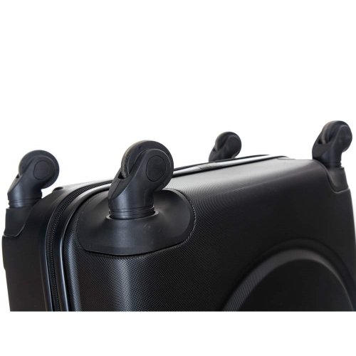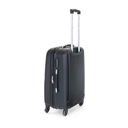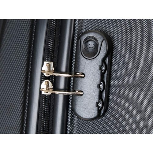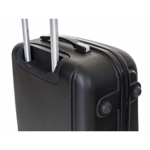 Cestovný škrupinový kufor na kolieskach ABS16 veľkosti M v čiernej farbe, je vyrobený z kvalitného plastu ABS, ktorý je odolný proti nárazu. Je opatrený 4 kolieskami otočnými o 360 st., vďaka tomu je manipulácia s kufrom veľmi jednoduchá. Kufor má 3 plastové madlá: bočné a dve horné, z ktorých je jedno s teleskopickou rukoväťou s poistkou proti zasunutiu a možnosťou nastaviteľnej výšky vo viacerých polohách. Kufor sa uzatvára na zips a oboch jazdcov môžete spojiť do kódového zámku. Vnútorná časť kufra má látkovú deliacu prepážku s vreckom a krížové upínanie pre lepšiu fixáciu a usporiadanie vašich vecí. Nosnosť cestovnej batožiny je 18 kg. Rozmery: 59 x 43 x 26 cm a výška kufra vr. koliesok 64 cm. Objem: 61 l. Váha: 3,2 kg.