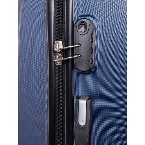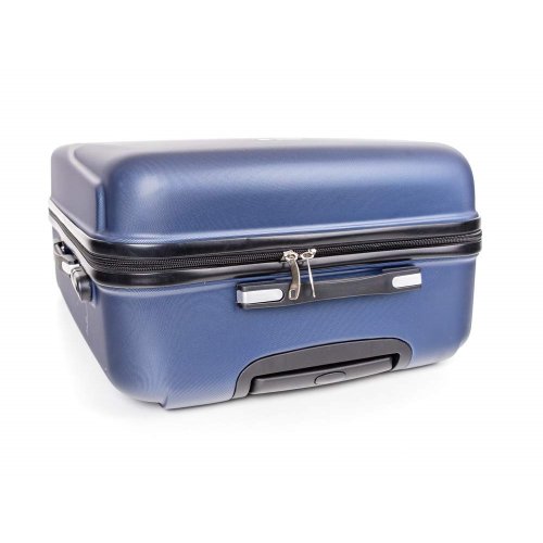 Cestovný škrupinový kufor na kolieskach ABS16 veľkosti L v modrej farbe, je vyrobený z kvalitného plastu ABS, ktorý je odolný proti nárazu. Je opatrený 4 kolieskami otočnými o 360 st., vďaka tomu je manipulácia s kufrom veľmi jednoduchá. Kufor má 3 plastové madlá: bočné a dve horné, z ktorých je jedno s teleskopickou rukoväťou s poistkou proti zasunutiu a možnosťou nastaviteľnej výšky vo viacerých polohách. Kufor sa uzatvára na zips a oboch jazdcov môžete spojiť do kódového zámku. Vnútorná časť kufra má látkovú deliacu prepážku s vreckom a krížové upínanie pre lepšiu fixáciu a usporiadanie vašich vecí. Nosnosť cestovnej batožiny je 23 kg. Rozmery: 69 x 49 x 29 cm a výška kufra vr. koliesok 75 cm. Objem: 91 l. Váha: 3,8 kg.