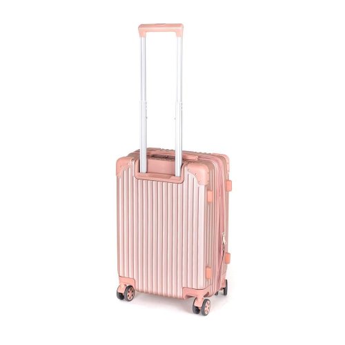 Cestovný škrupinový kufor na kolieskach ABS25 so spevnenými rohmi, veľkosti S v zlatoružovej farbe, je vyrobený z kvalitného plastu ABS, ktorý je odolný proti nárazu. Je opatrený 4 dvojitými kolieskami otočnými o 360 st., vďaka tomu je manipulácia s kufrom veľmi jednoduchá. Kufor má 3 plastové madlá: bočné a dve horné, z ktorých je jedno s teleskopickou rukoväťou s poistkou proti zasunutiu a možnosťou nastaviteľnej výšky vo viacerých polohách. Kufor sa uzatvára na zips a oboch jazdcov môžete spojiť do kódového zámku TSA, ktorý veľmi uvítate pri náhodných kontrolách na letisku. Vnútorná časť kufra má látkovú deliacu prepážku s vreckom a krížové upínanie pre lepšiu fixáciu a usporiadanie vašich vecí. Kufor je vybavený expanderom, vďaka ktorému je možné po rozopnutí 1 zipsu kufor rozšíriť do hĺbky o niekoľko cm a objemovo tak zväčšiť priestor až o pätinu. Nosnosť cestovnej batožiny je 10 kg. Rozmery: 50 x 35 x 23 cm a výška kufra vr. koliesok 56 cm. Objem: 37 l. Váha: 2,52 kg.