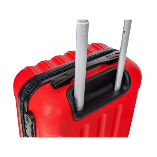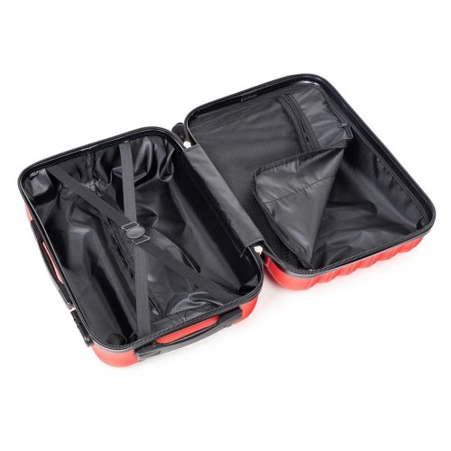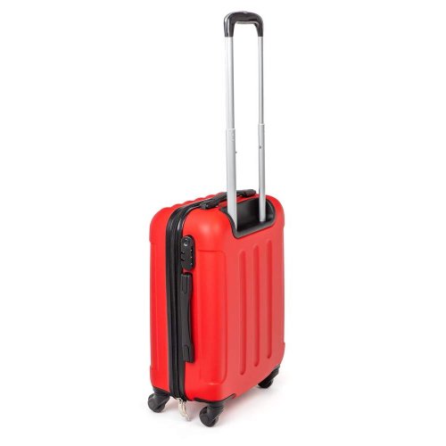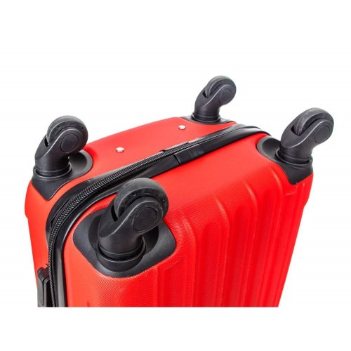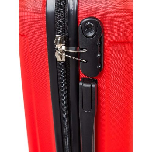 Cestovný škrupinový kufor na kolieskach ABS25 veľkosti 20'' v červenej farbe, je vyrobený z kvalitného plastu ABS, ktorý je odolný proti nárazu. Je opatrený 4 kolieskami otočnými o 360 st., vďaka tomu je manipulácia s kufrom veľmi jednoduchá. Kufor má 3 plastové madlá: bočné a dve horné, z ktorých je jedno s teleskopickou rukoväťou s poistkou proti zasunutiu a možnosťou nastaviteľnej výšky vo viacerých polohách. Kufor sa uzatvára na zips a oboch jazdcov môžete spojiť do kódového zámku. Vnútorná časť kufra má látkovú deliacu prepážku s vreckom a krížové upínanie pre lepšiu fixáciu a usporiadanie vašich vecí. Nosnosť cestovnej batožiny je 10 kg. Rozmery: 50 x 35 x 23 cm a výška kufra vr. koliesok 56 cm. Objem: 37 l. Váha: 2,52 kg.