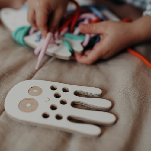 • drevená prevliekacia hračka pre rozvoj kreativity, fantázie a jemnej motoriky