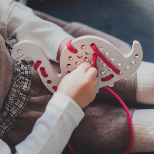 • drevená prevliekacia hračka pre rozvoj kreativity, fantázie a jemnej motoriky
