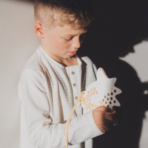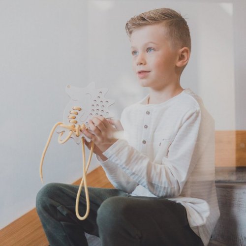 • drevená prevliekacia hračka pre rozvoj kreativity, fantázie a jemnej motoriky