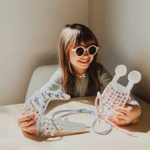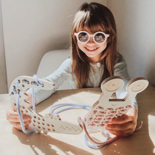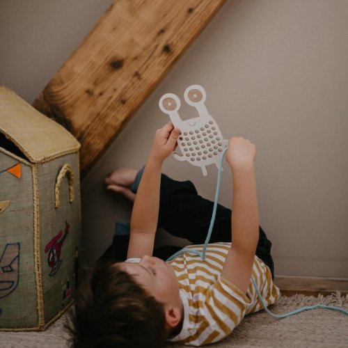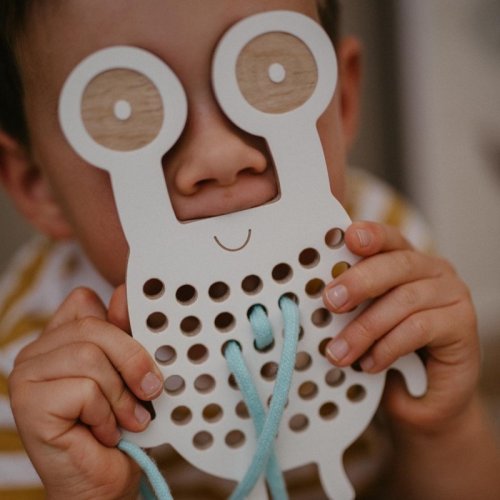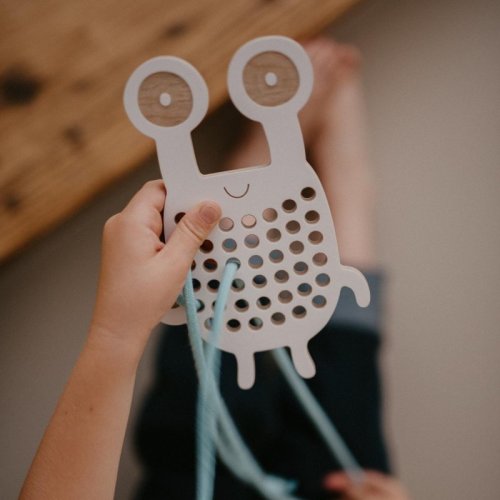 • drevená prevliekacia hračka pre rozvoj kreativity, fantázie a jemnej motoriky