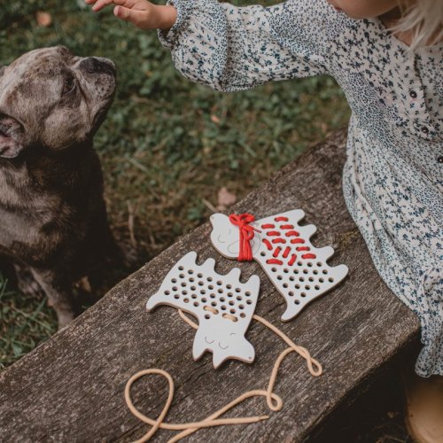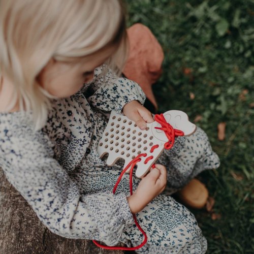 • drevená prevliekacia hračka pre rozvoj kreativity, fantázie a jemnej motoriky