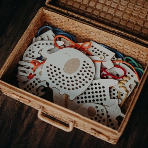 • drevená prevliekacia hračka pre rozvoj kreativity, fantázie a jemnej motoriky