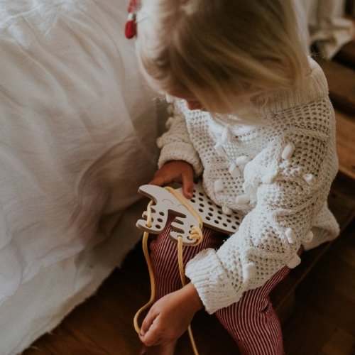 • drevená prevliekacia hračka pre rozvoj kreativity, fantázie a jemnej motoriky