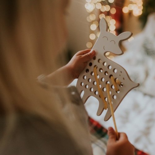 • drevená prevliekacia hračka pre rozvoj kreativity, fantázie a jemnej motoriky