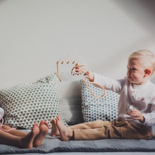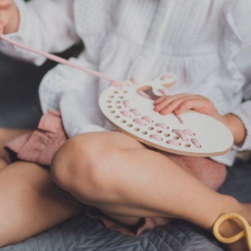 • drevená prevliekacia hračka pre rozvoj kreativity, fantázie a jemnej motoriky