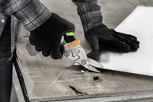 Prevodové nožnice na plech pre pravý strih. Sú ideálne na strihanie rôznych odolných materiálov, vrátane plechu, potrubia, sadrokartónových rohov, kovových svorníkov, líšt, podhľadov, rímsových dosiek, odkvapových líšt, odkvapov a ďalších materiálov. Majú čepele s patentovanou technológiou PowerGear - prevodový systém, ktorý poskytne o 40% viac sily, najmä v najťažšej časti strihu. Strižná kapacita: oceľ valcovaná za studena až do hrúbky 1,214 mm alebo nehrdzavejúca oceľ až do hrúbky 0,644 mm. Dĺžka strihu: 13,97 cm. Výška: 25 mm, dĺžka: 290 mm, šírka: 102 mm, hmotnosť: 420 g. Záruka: 5 rokov.