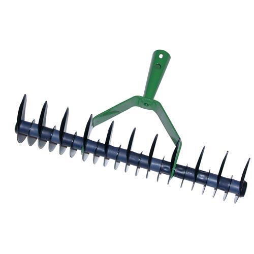 rozmery (Š x V): 36 x 13 cm bez násady Tento obojstranný prevzdušňovač slúži na vyhrabanie machu a prevzdušňovanie na menších trávnych plochách a je tiež vhodný na rozrušenie substrátu pred dosevom.