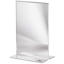 Univerzálny stojan v tvare T pre informačnú a reklamnú prezentáciu Vysoko kvalitný akryl s hrúbkou 1,8 mm dodáva stojanu veľmi vysokú úroveň stability Transparentné Rozmery: 10,5 x 21 cm