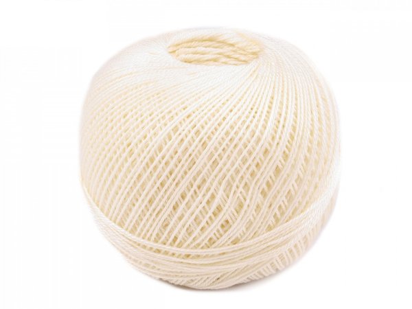 Háčkovacia/pletacia priadza, tex50x3, 10 klbiek (30g-200m) v krabičke. Čísla 50x3 znamenajú: 50tex sú číslovanie váhové (rozhodujúca je váha - hmotnosť určitej dĺžky nite). Tu platí pravidlo: Čím vyššie je číslo, tým hrubšia je priadza. Číslo 3 znamená že niť sa skladá z 3 jednoduchých nití. Hrúbka priadze je cca 0,5 mm.