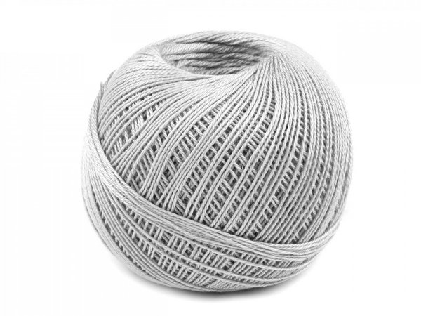 Háčkovacia/pletacia priadza, tex50x3, 10 klbiek (30g-200m) v krabičke. Čísla 50x3 znamenajú: 50tex sú číslovanie váhové (rozhodujúca je váha - hmotnosť určitej dĺžky nite). Tu platí pravidlo: Čím vyššie je číslo, tým hrubšia je priadza. Číslo 3 znamená že niť sa skladá z 3 jednoduchých nití. Hrúbka priadze je cca 0,5 mm.