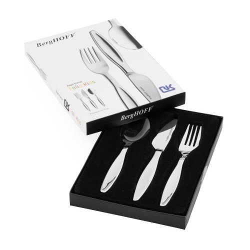 špeciálne tvarovaný detský príbor vhodný pre tých najmenších labužníkov - kompletná sada 3 kusy obsahuje lyžicu, vidličku a nôž - ušľachtilá nerezová oceľ vo vysokej kvalite 18/10 - lesklé prevedenie - dokonalá ergonómia, špeciálne vytvorená pre detskú ruku - odolný čistenie, príbory je možné umývať aj v umývačke riadu - rozmery jednotlivých kusov: vidlička 16 cm, lyžica 16 cm, nôž 17.5 cm - detský príbor FOLIO od belgickej značky Berghoff je zárukou kvality a precízneho prevedenia