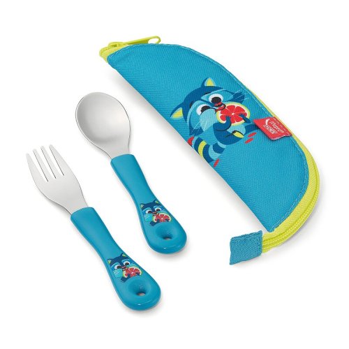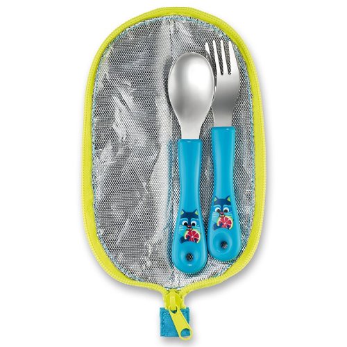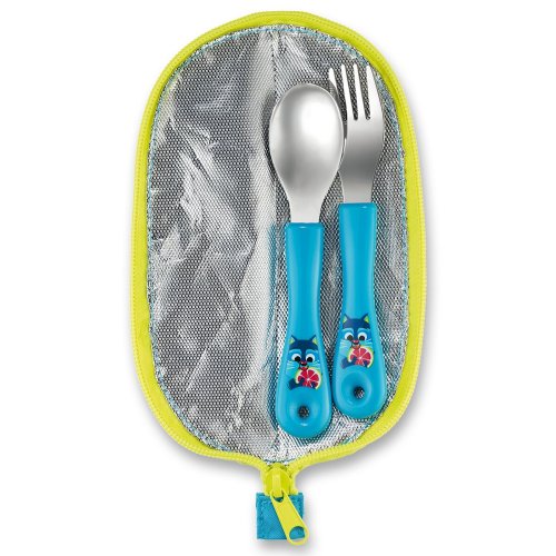 príbor z nerezovej ocele, * obsahuje lyžičku a vidličku, * textilné puzdro na zips, vnútorný materiál hliníková fólia, * príbory možno umývať v umývačke, * puzdro možno ľahko očistiť umývacou hubkou, Súčasťou je sada receptov.,