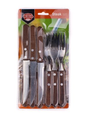 Príbor steakový BBQ (6 + 6 ks) nerez, drevená rukoväť, tmavá.