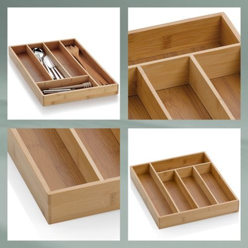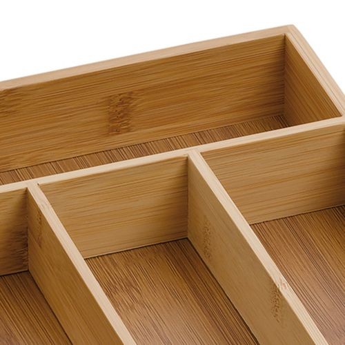 • materiál: prírodné bambusové drevo- ľahký, odolný materiál s dlhou životnosťou- dĺžka: 30 cm- hĺbka: 34 cm- výška: 5 cm- 5 priehradok