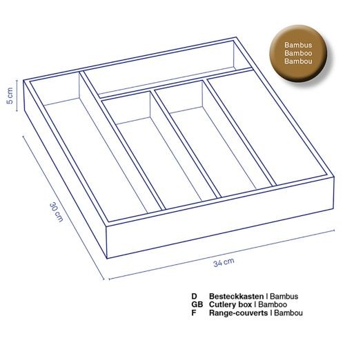 - materiál: prírodné bambusové drevo- ľahký, odolný materiál s dlhou životnosťou- dĺžka: 30 cm- hĺbka: 34 cm- výška: 5 cm- 5 priehradok
