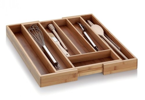 • materiál: prírodné bambusové drevo- ľahký, odolný materiál s dlhou životnosťou- rozkladacia dĺžka, dokonale prispôsobíte vašej zásuvke- nastaviteľná dĺžka: 28,5 až 39 cm- hĺbka: 33 cm- výška: 5 cm- 5 až 7 priehradok