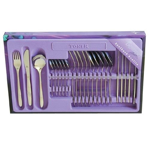 24 dielna sada obsahuje vidličky, nože, lyžičky a lyžice. vyrobené z kvalitnej nereze 18/10 mechanicky leštené do vysokého lesku. Vhodné do umývačky riadu. Balené v darčekovej krabici. Český výrobca. EAN 8590159051876