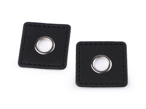 Priechodka s koženkovým štvorčekom na našitie, prievlak 10 mm - hnedočierna (20 ks)