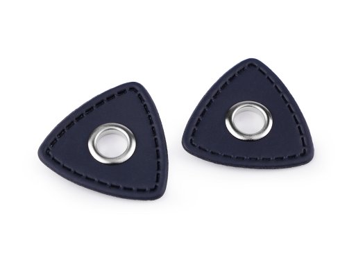 Priechodka s koženkovým trojuholníkom na našitie, prievlak 8 mm - modrá tmavá (20 ks)