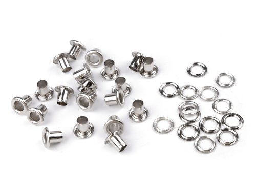 Kovové priechodky spevnia dierky v materiáli a umožnia prevlečenie šnúry alebo gumy. Využijete ich pri výrobe a zdobení tašiek, kabeliek alebo batohov. Skladajú sa z dvoch častí. Pri styku s vodou môžu hrdzavieť. Nitovanie sa vykonáva pistónom a lisom, ktorý je pod kódom 070241 alebo 790770. Na vysekávanie dier do materiálu vám odporúčame sadu výsečníkov.