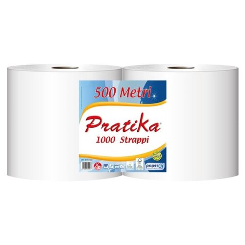 Priemyselná papierová rolka Pratika Návin: 250 m Mateeriál: celulóza Počet vrstiev: 2 Počet útržkov: 1000 Výška rolky: 25 cm Priemer rolky: 29 cm Počet kusov v balení: 2