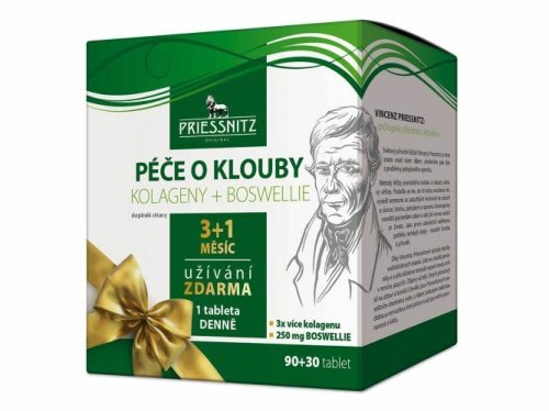 PRIESSNITZ® STAROSTLIVOSŤ O KĹBY, prispieva vďaka obsahu boswélie k podpore hybnosti a pružnosti kĺbov, vďaka vitamínu C k normálnej tvorbe kolagénu, pre normálnu funkciu chrupaviek, a vďaka vitamínom K a D k udržaniu normálneho stavu kostí. Ďalej je starostlivosť obohatená o tri, zákazníkov žiadané, typy kolagénov. Okrem hydrolyzovaných kolagénov typu I a II je táto špeciálna peča o kĺby obohatená aj o 40 μg natívneho kolagénu typu II. Teda o kolagén zachované vo svojej prírodnej podobe.