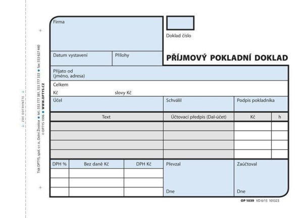 Príjmový doklad, A6, 2 × 50 listov, číslovaný