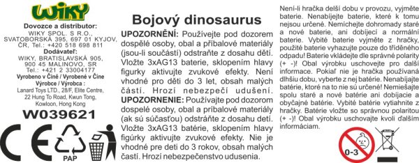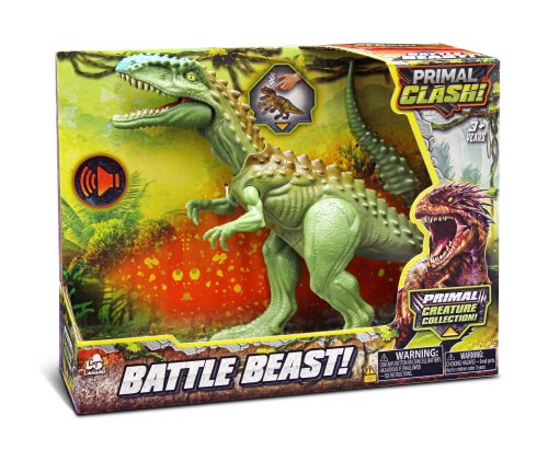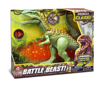 Primal Clash! Bojový dinosaurus. Veľkosť figúrky 21 cm. Dinosaurus má pohyblivé končatiny, čeľusť, a vydáva zvukové efekty. Aktivácia efektov sklopením hlavy. 3xAG13 batérie, súčasťou balenia. 2 varianty - Carnotaurus, Gigantosaurus.
