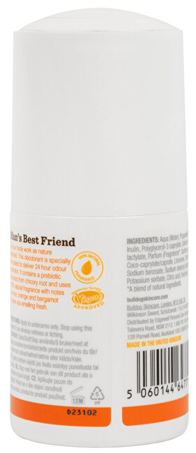 Bulldog dezodorant Lemon a Bergamot vám ponúkajú až 24-hodinovú ochranu proti pachom a pomôže vám cítiť sa svieži po celý deň. Vďaka prebiotiku z koreňa čakanky je dezodorant šetrný k pokožke, a navyše je naplnený prírodnou vôňou skladajúcou sa z bergamotu, pomaranča a citrónu. Doprajte sebe alebo niekomu blízkemu starostlivosť od značky Bulldog. Tento produkt pochádza od značky, ktorá je držiteľom certifikácie Leaping Bunny, potvrdzujúca, že produkty ani ich zložky nie sú testované na zvieratách.