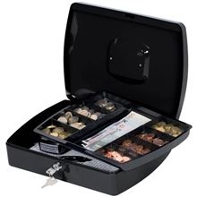Vyrobená z lakovanej ocele s povrchom odolným proti poškriabaniu Každá pokladňa je vybavená zámkovou vložkou ku ktorej dodávame 2 kľúče Súčasťou balenia je vyberateľný mincovník s 9 oddielmi Plastová rukoväť …