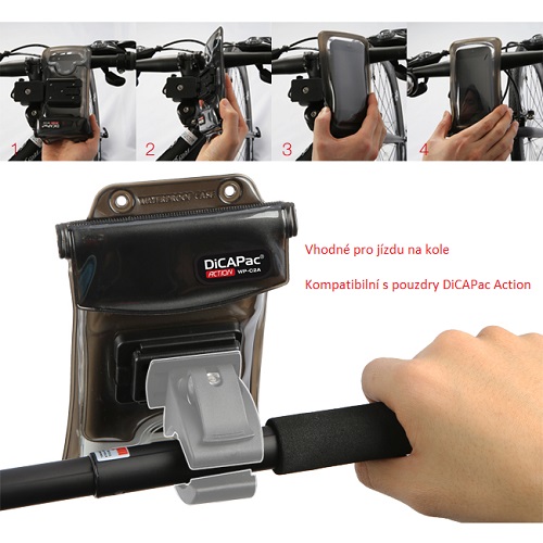 Ľahký 85 g športový DRŽIAK NA KOLESO DP-1B je vyrobený na upevnenie mobilného telefónu na riadidlá bicykla. Otáča sa dookola a preto je možné mobilný telefón nastaviť podľa potreby cyklistu. Výhodou je kompatibilita so všetkými puzdrami firmy DiCAPac Ac na mobilné telefóny.