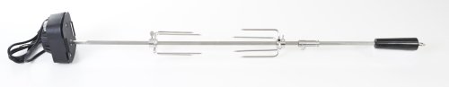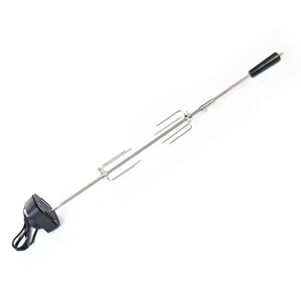 Z jednej strany je ihla vybavená odnímateľným plastovým držadlom , na ktorom je praktické očko na uchytenie. Z druhej strany sa nachádza motorček v plastovom kryte , na ktorom je umiestnené tlačidlo na zapínanie/vypínanie. Motorček s napätím 230 V jednoducho zapojíte do elektriny pomocou kábla v dĺžke cca 125 cm. Motorček s ihlou otáča rýchlosťou asi 2 otáčky za minútu, aby sa pripravovaný pokrm nepripekal, ale piekol sa rovnomerne.