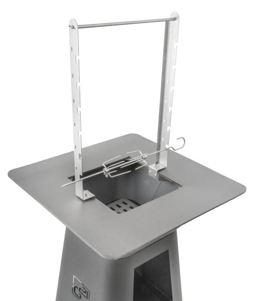 Máte radi grilované kurčatá a ďalšie pokrmy, pripravované na ihle? Vďaka tejto praktickej grilovacej zostave s ihlou , 6-polohovým stojanom a držiakom na zavesenie kotlíka výrazne rozšírite možnosti svojho grilu.