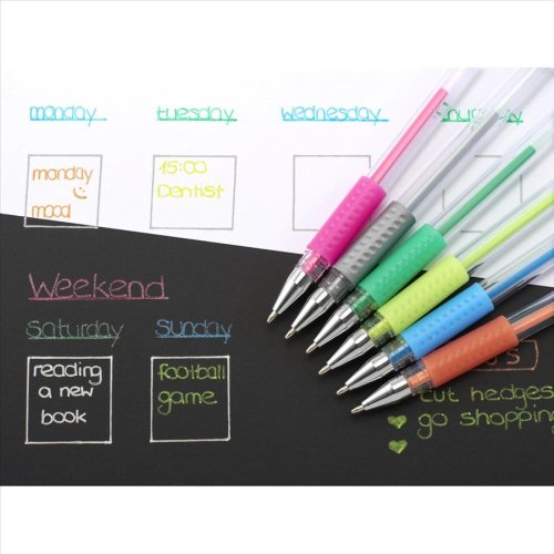 Perá sú ideálne na dekoratívne písanie, napríklad na popisy v albumoch, foto kalendároch alebo blahoželaniach, a zároveň sa hodia aj na každodenné použitie v škole či kancelárii. Vďaka ľahkému plastovému telu s dĺžkou 14,9 cm a pogumovanej úchopovej časti sa pohodlne drží aj pri dlhšom písaní. Pigmentový gélový atrament je svetlostály, na savom papieri netečie a vďaka vysokému podielu pigmentov skvele vynikne na svetlých, tmavých aj farebných podkladoch.