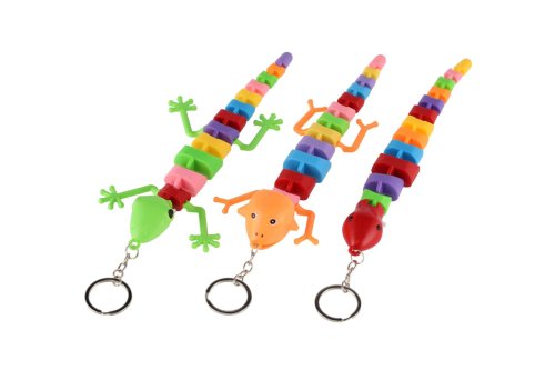 Parádna kľúčenka alebo prívesok na batoh v tvare jaštera. Po stlačení tlačidla na tvári začne v tlame jaštera blikať. Jašter je plastový s pohyblivým telom, na batérie 2 x LR41, ktoré sú vložené. Rozmer jaštera: 28 cm Vhodné od 3 rokov